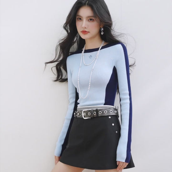 Elastic Knit Top – Casual Long-Sleeve Style