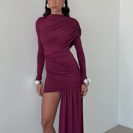 Asymmetric Draped Evening Dress – One-Shoulder High Slit